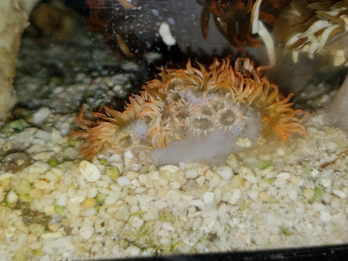 Rock Flower Anemone Epicystis crucifer are found in a variety of colors. Im planning to purchase a marina hang out breeding box to place them in. My rock flower anemones started spawning tonight.